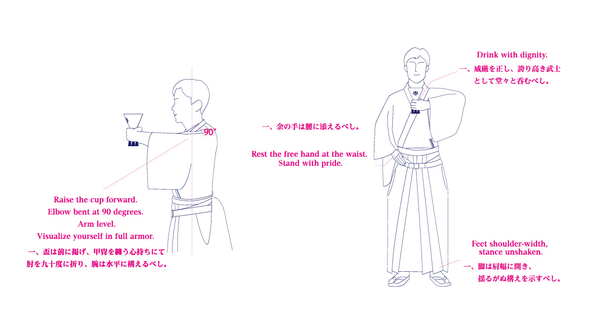 respond as one: “BANZAI!” (Long live prosperity!), — loud, fierce, united. - Final Act: Thrust the cup skyward, first offering sake to the heavens.