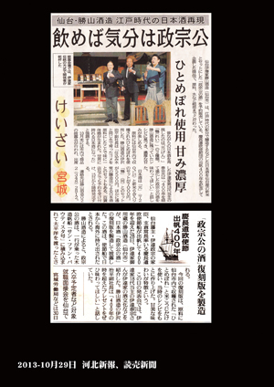 河北新報、読売新聞社にて伊達家本石米とひとめぼれで醸した