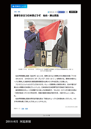 河北新報 2014年8月9日、高級葉巻ハバナシガー専用の酒THE BRAVE SMOKERのプレス発表をご紹介して頂きました。